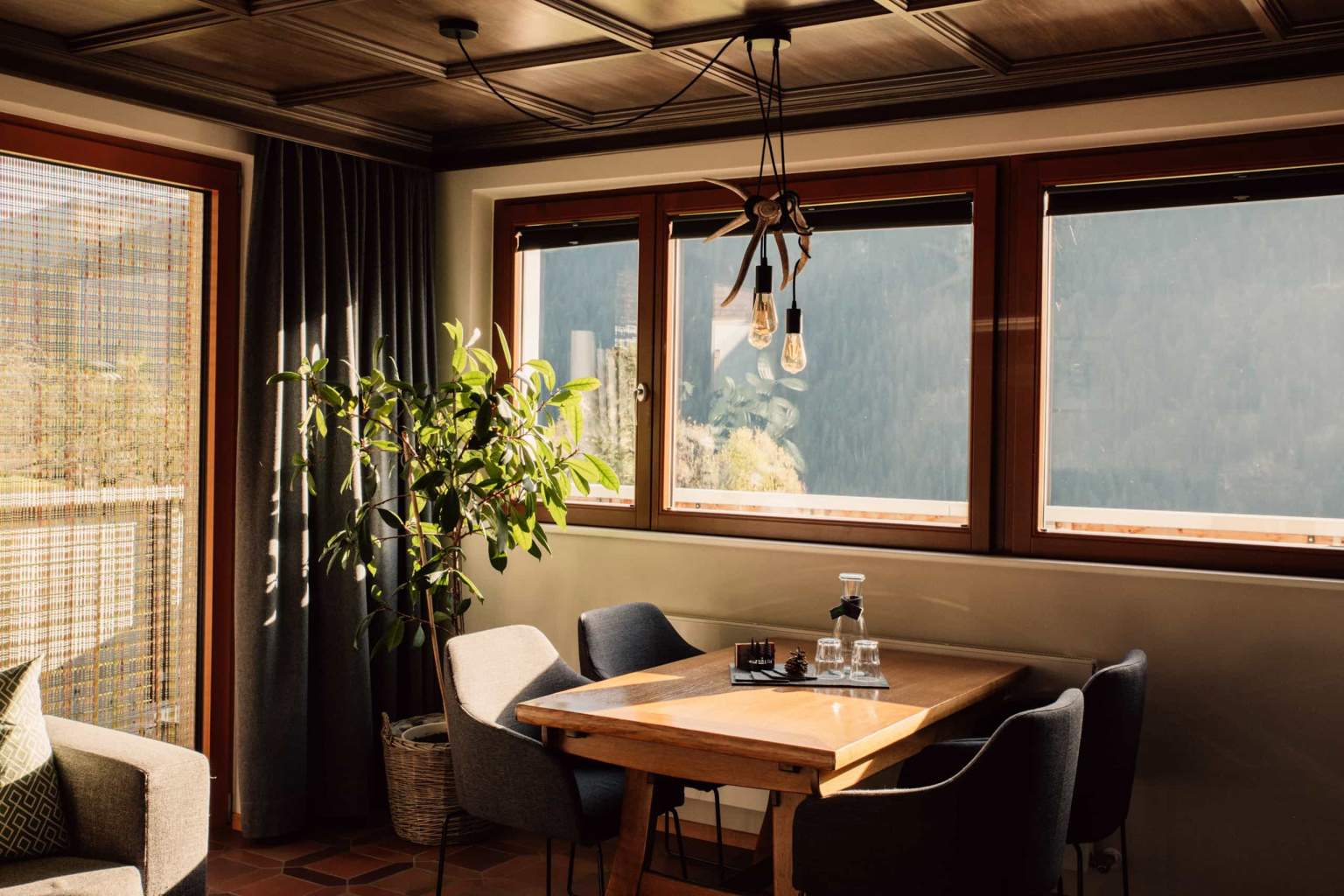 Wenn man sich über den steilen, schmalen Weg dem Tanafreida schlängelnd nähert, merkt man bald: Dieser Flecken Erde ist etwas Besonderes. Denn das Haus liegt wie auf einem Balkon. Der Blick tief hinunter ins Tal und hinauf auf die umgebenden Berge, der Aufwind, der übers Gesicht streichelt, das Klangkonzert der Natur:
